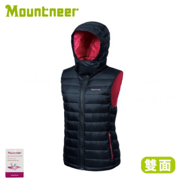 【Mountneer 山林 女 750FP雙面穿羽絨背心《黑色》】32V10//保暖背心/連帽背心/悠遊山水