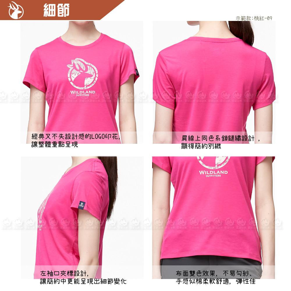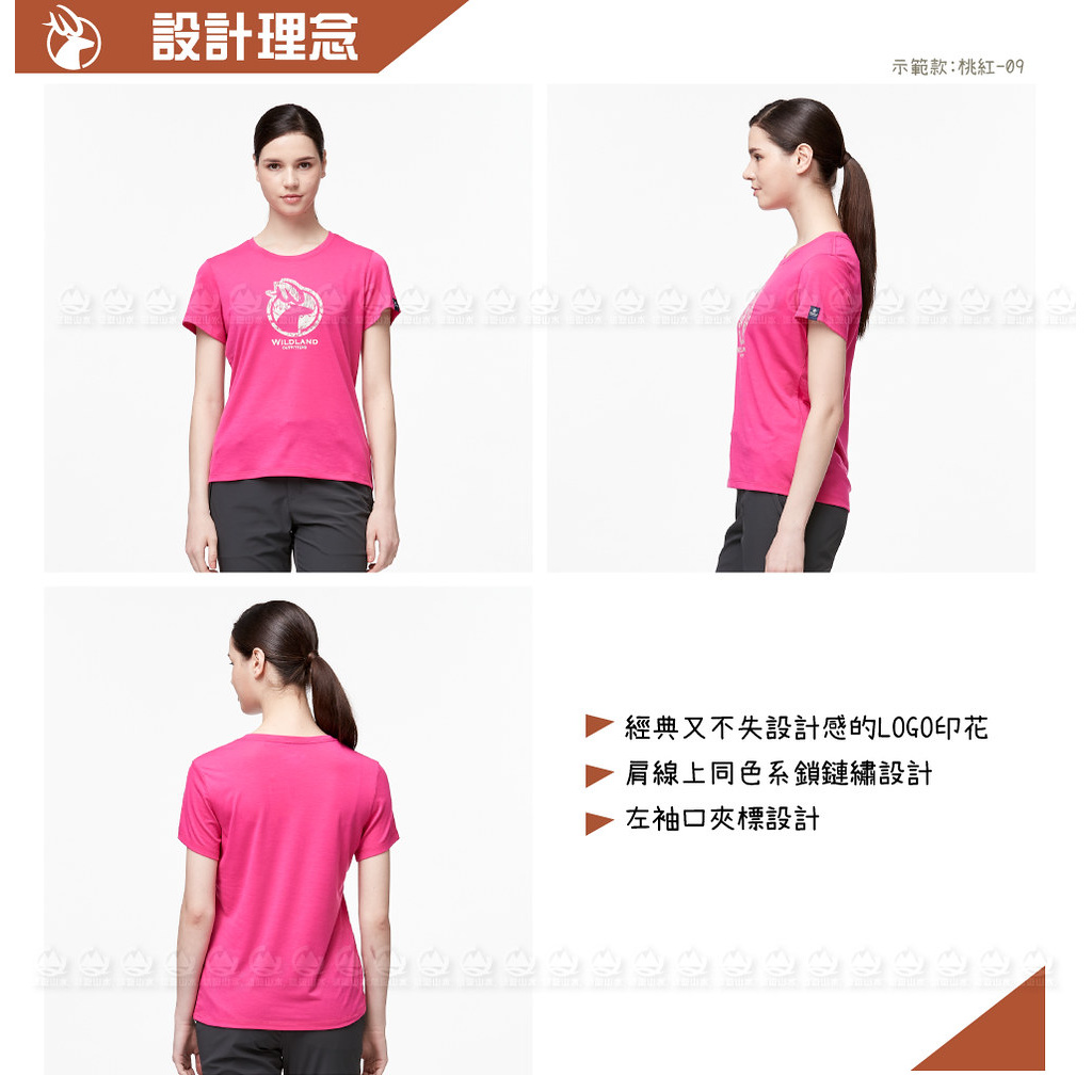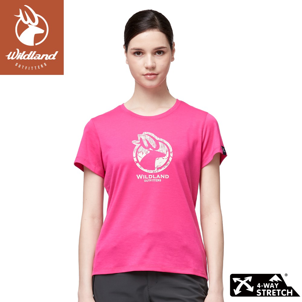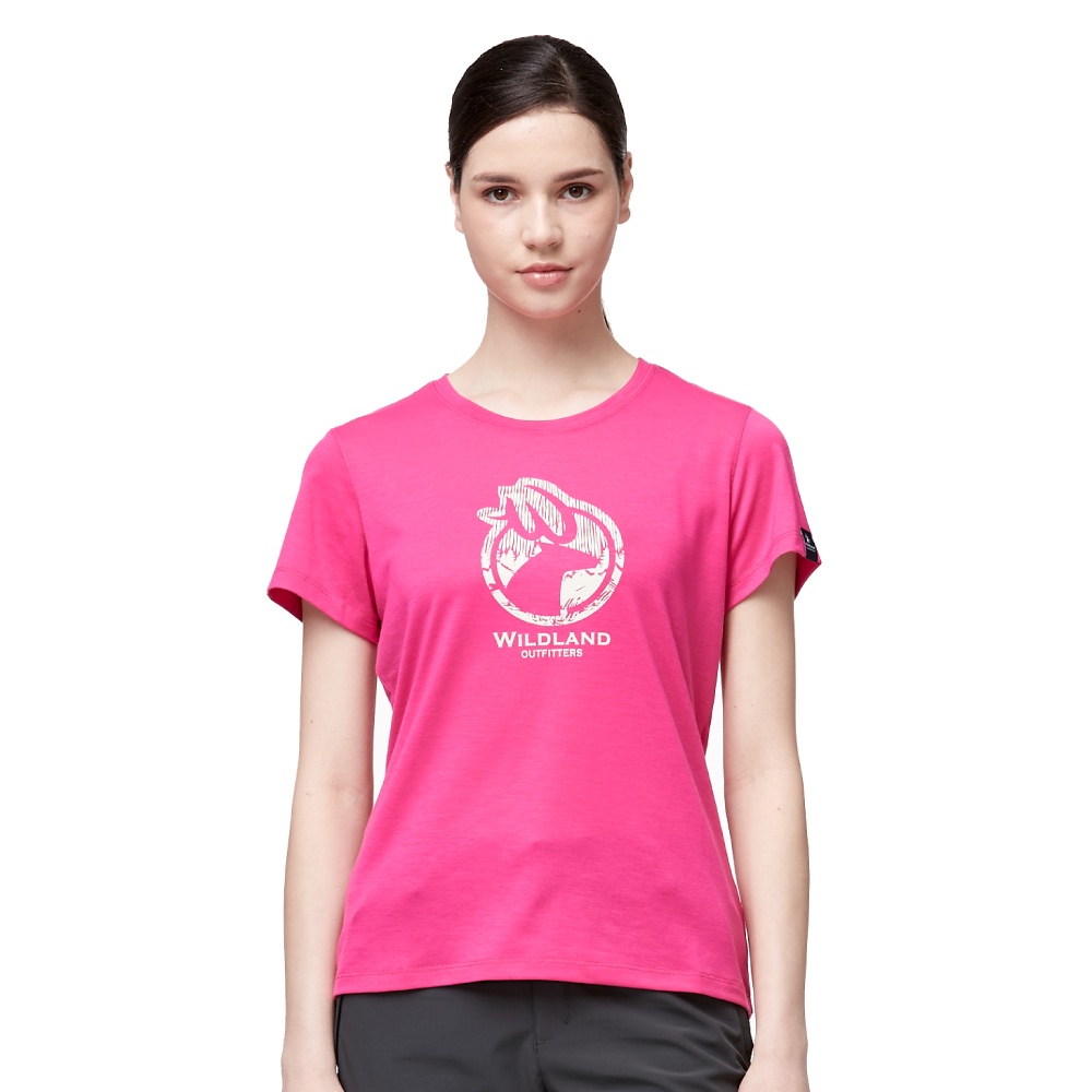 【Wildland 荒野 女 彈性LOGO印花圓領上衣《桃紅》】0A91603/短袖/圓領T/運動衣/休閒衫/悠遊山水