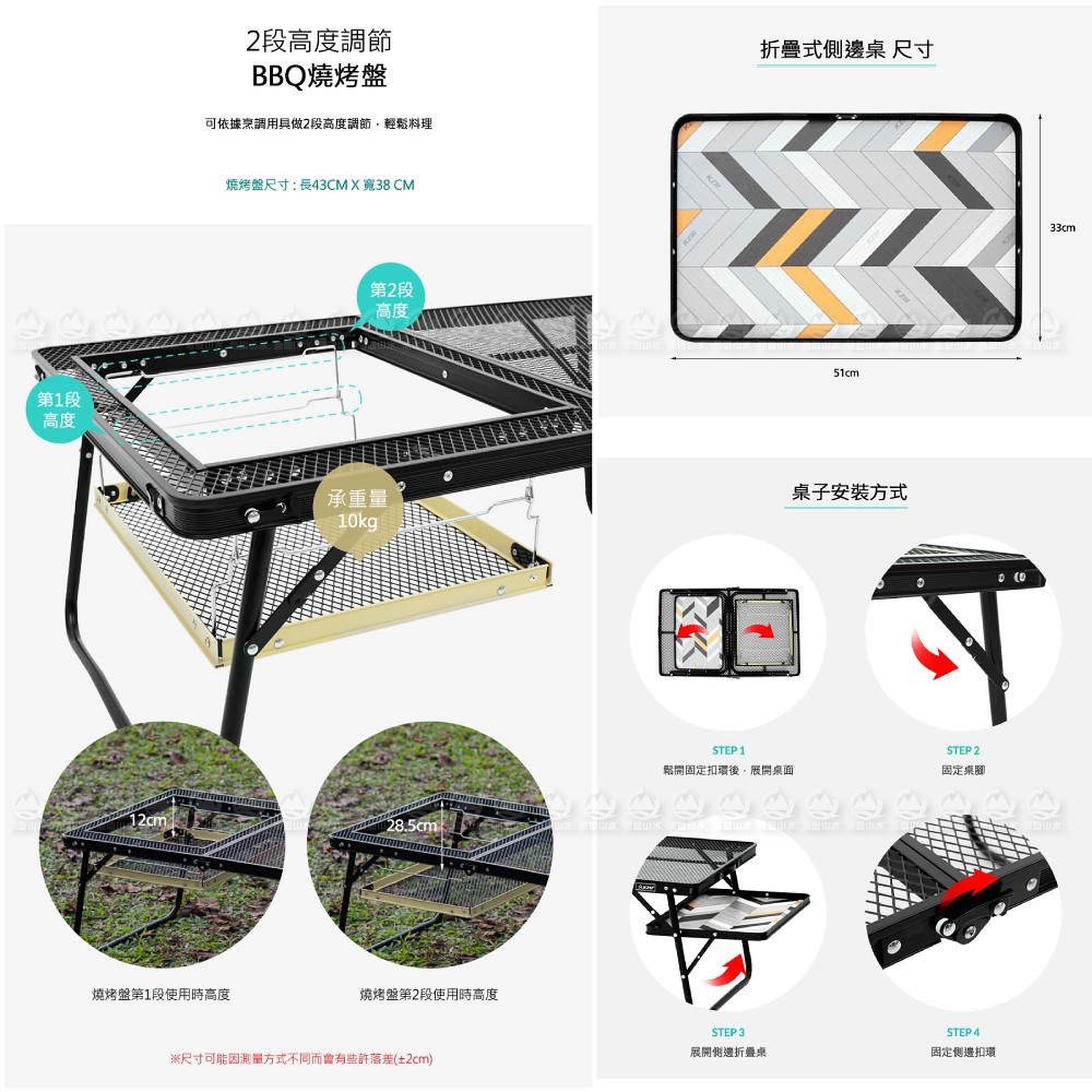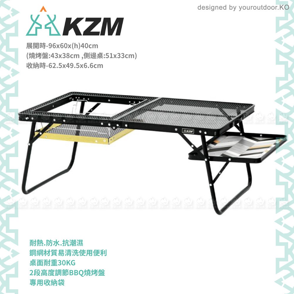 【KAZMI 韓國 KZM IMS 多功能鋼網燒烤桌 含收納袋】K20T3U006/露營桌/BBQ/摺疊桌/悠遊山水