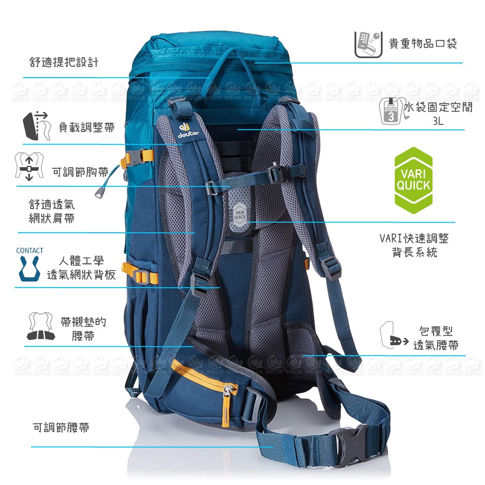 【Deuter 德國 FOX 背包 30+4L《湖藍/藍》】3611121/雙肩後背包/自助旅行/登山/專業輕/悠遊山水