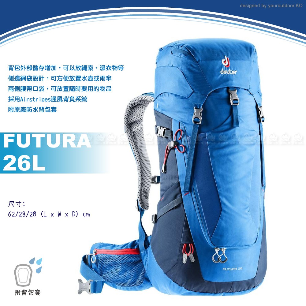 【Deuter 德國 FUTURA 26L 透氣網架背包《藍》】3400318/雙肩後背包/登山/專業輕量透氣/悠遊山水