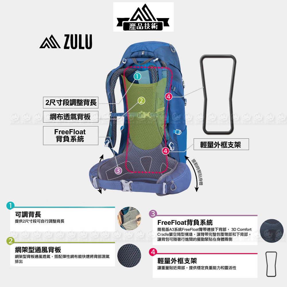 【GREGORY 美國 33L ZULU 35 登山背包《臭氧黑S/M》】111589/雙肩背包/後背包/自助/悠遊山水