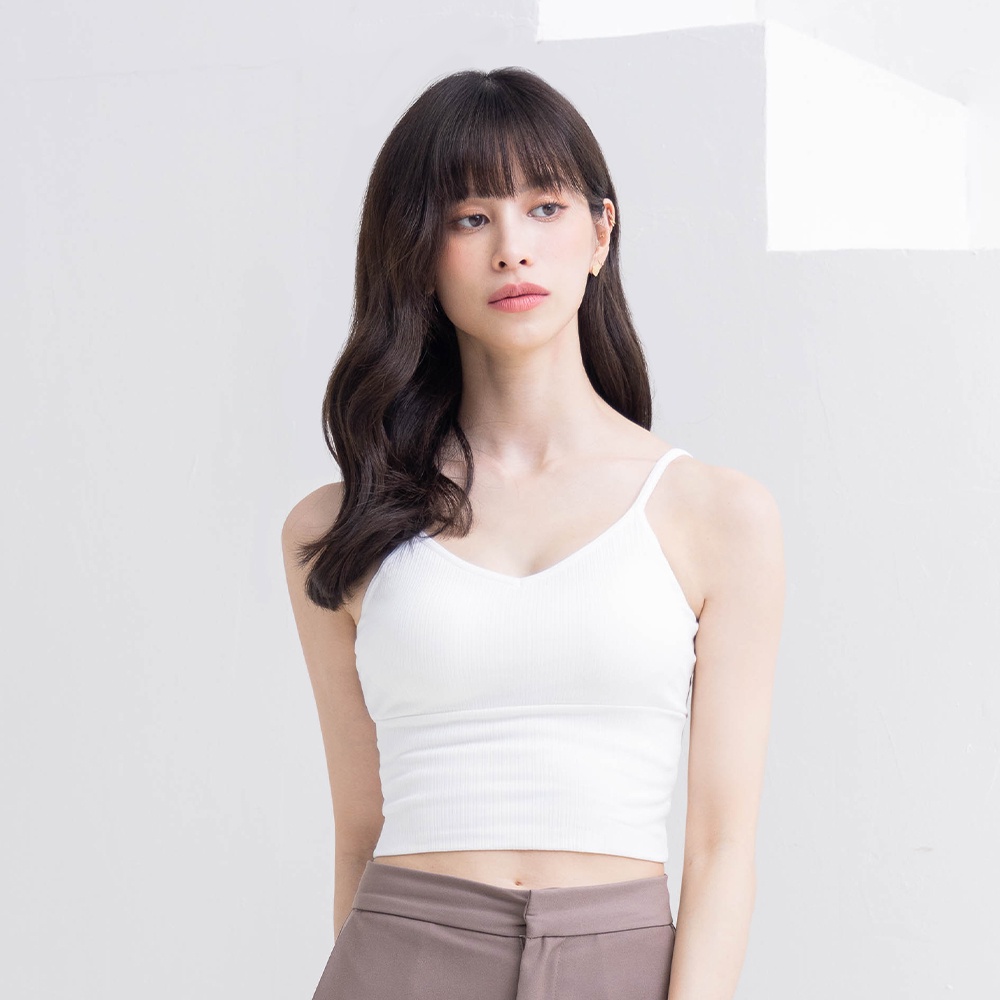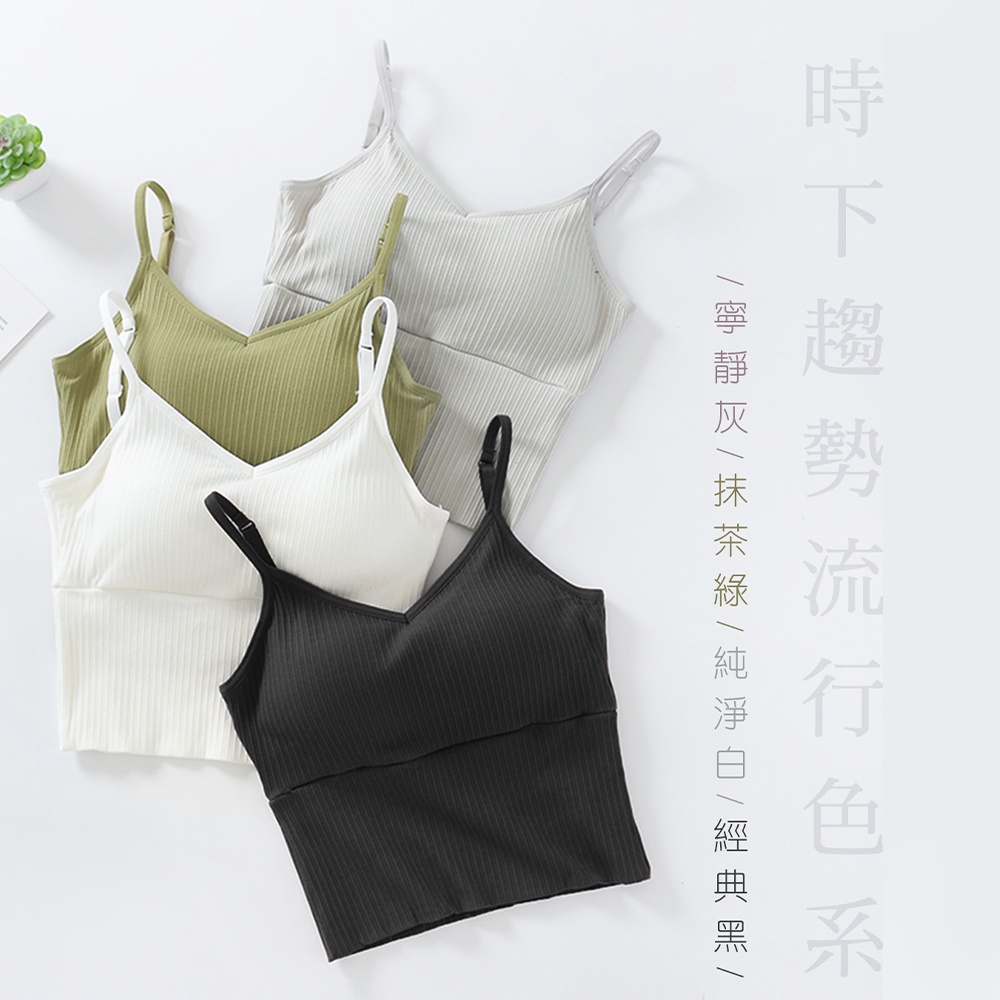 【Anlove】輕漾時光羅紋V領細肩BraT(純淨白 女S-XL)V領BraT 一體式胸墊 居家BraT 無鋼圈細肩