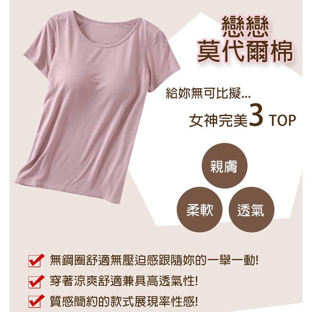 【Anlove】舞動女伶無痕無鋼圈短袖Bra T(純淨白 女生M-XL)莫代爾 短袖BraT 居家BraT 短袖無鋼圈