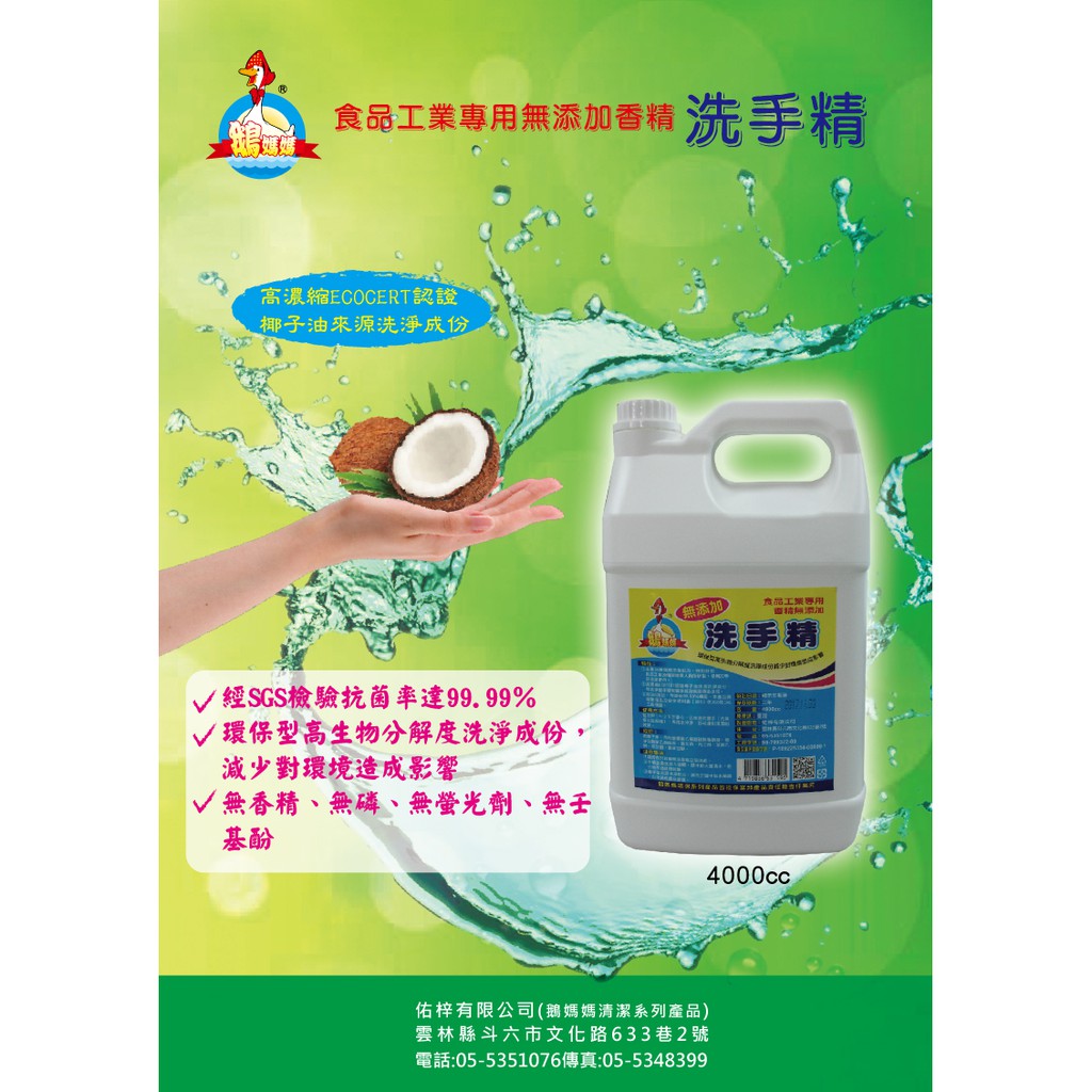《工廠直營》食品業專用無添加洗手精【4000cc】經公證單位檢驗,可檢附安全資料表(SDS)偏遠地區前請先私訊【鵝媽