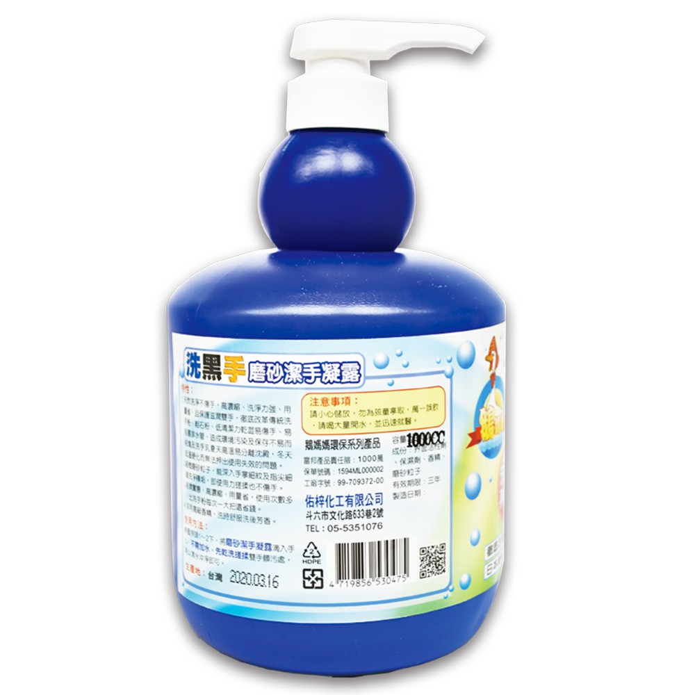 《工廠直營》鵝媽媽洗黑手摩砂潔手凝露 (一般油污專用) 【1000cc】天然洗淨不傷手,高濃縮、洗淨力強、用量省