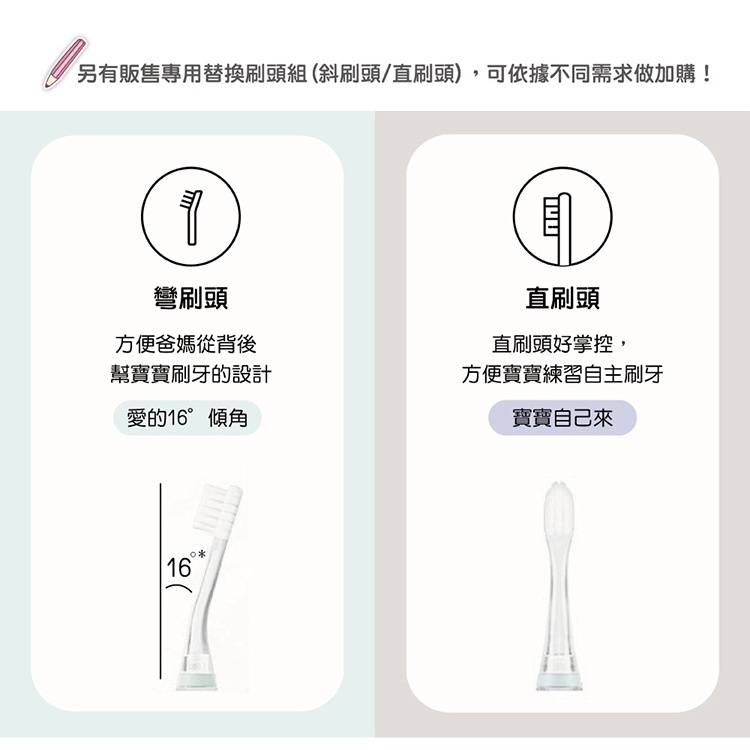 日本《Pigeon 貝親》寶寶專用電動牙刷(彎刷頭)/刷頭(2入/彎刷頭)