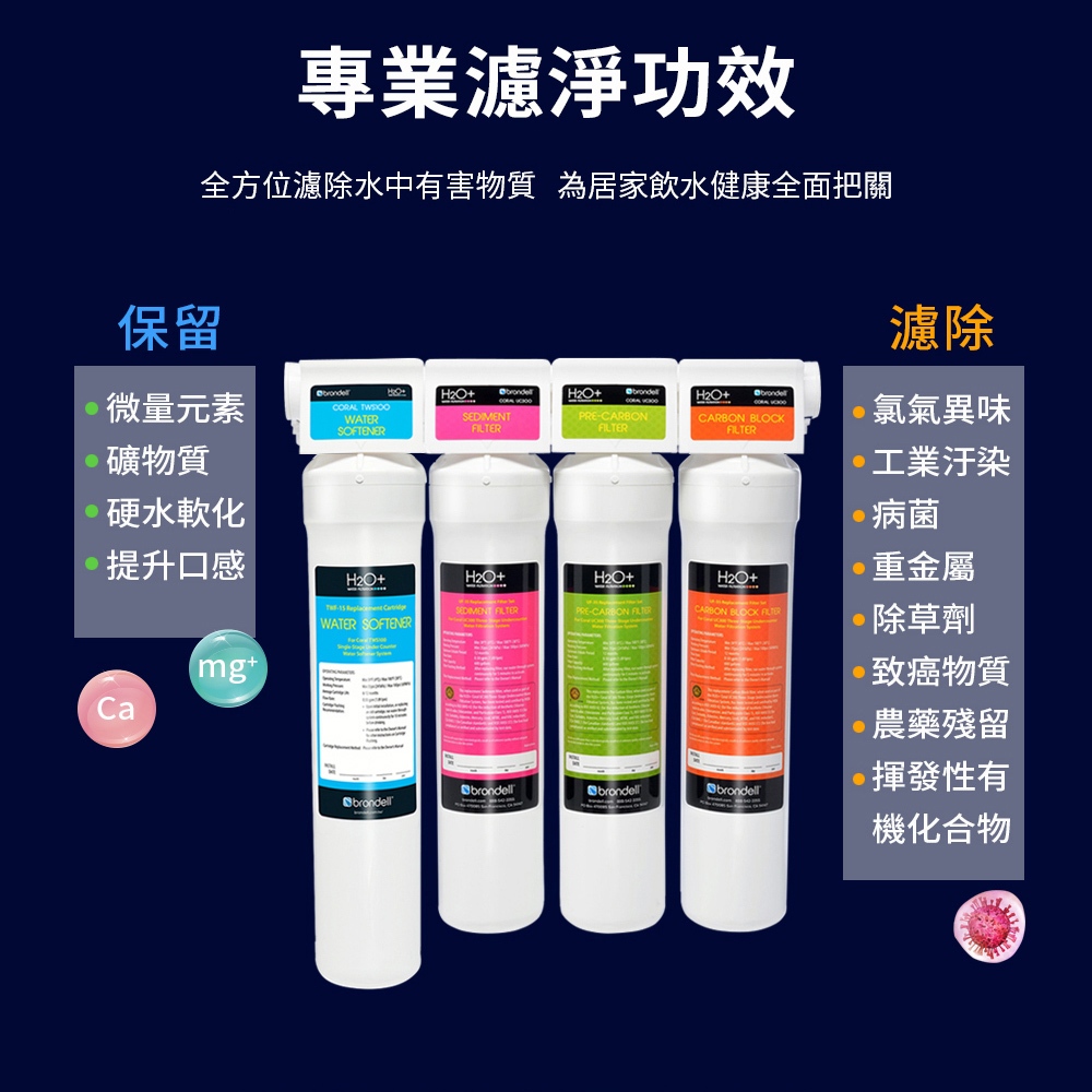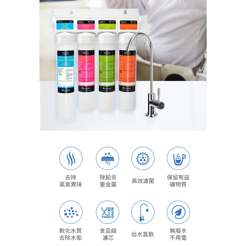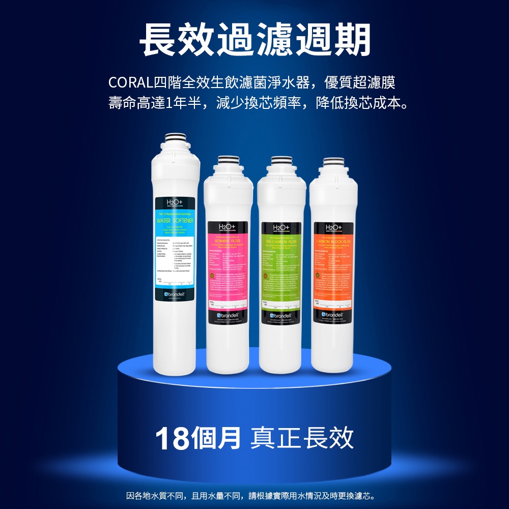 【美國邦特爾】Brondell 四階全效生飲濾菌淨水器 買再贈替換濾芯1組