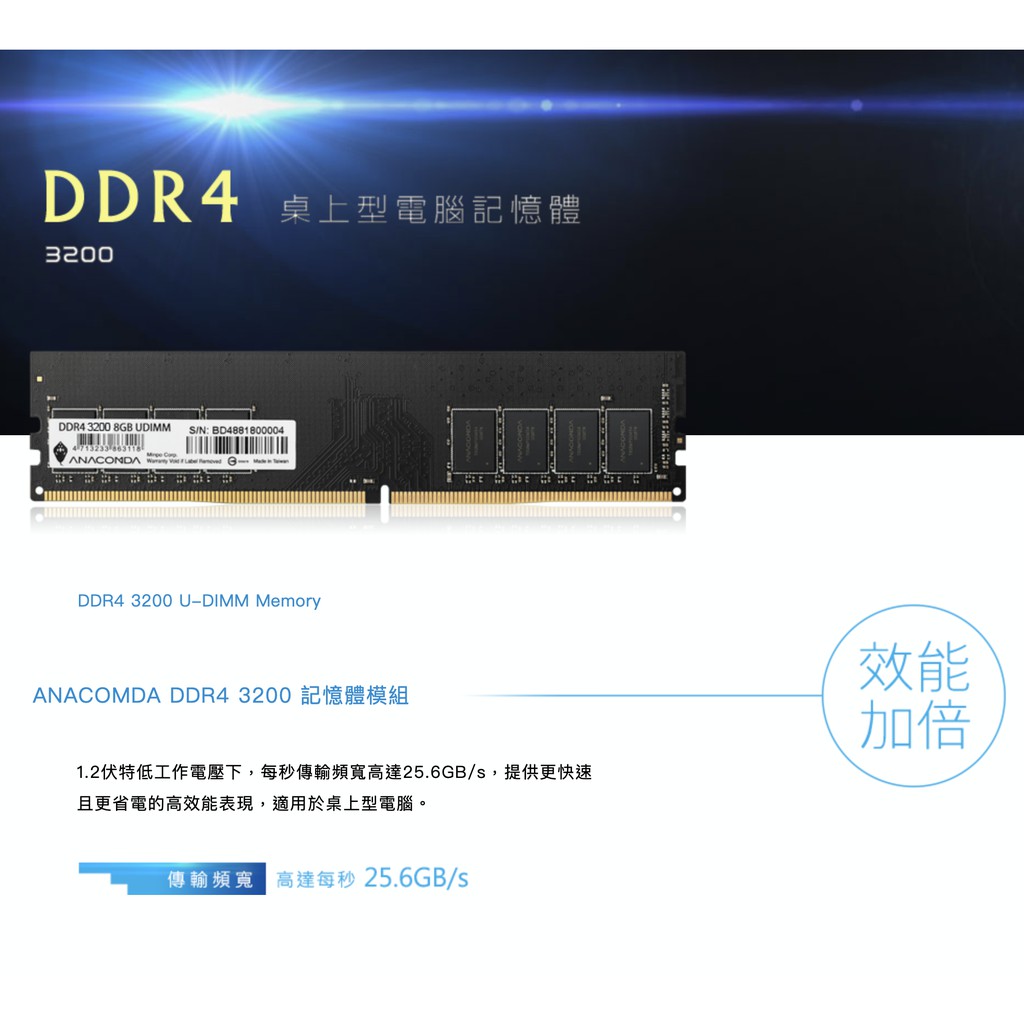 【隔日到貨】巨蟒 DDR4 記憶體 3200MHz 16GB UDIMM 桌上型記憶體 有限終身保固 D4