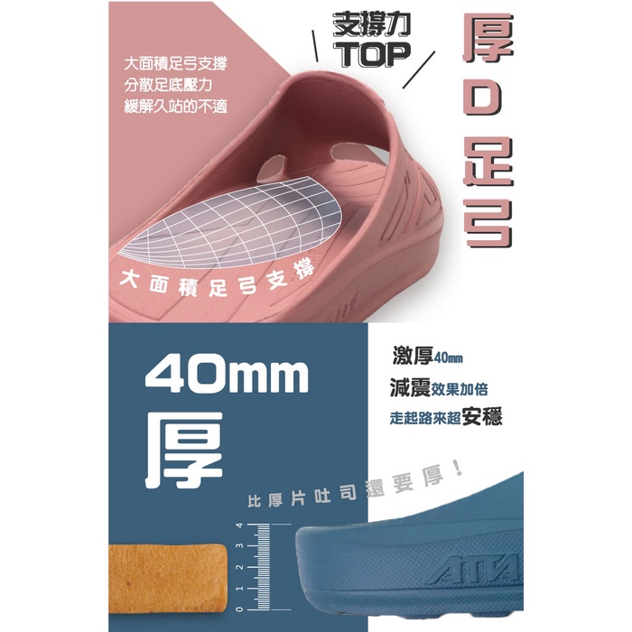 【ATTA】40厚均壓散步拖鞋(4色)足壓分散/激厚減震/防水厚底/MIT台灣製/原廠公司貨