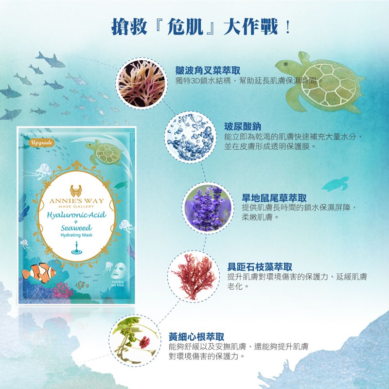 【Annie's Way 安妮絲薇】夢幻秘境系列—玻尿酸海藻保濕鎖水面膜 (10入/盒)