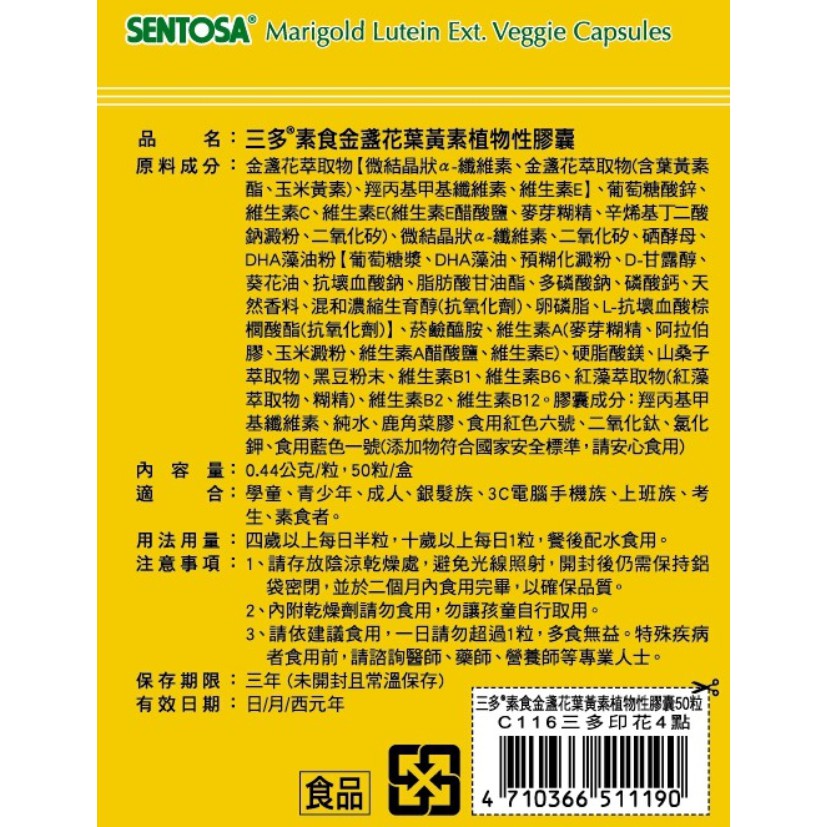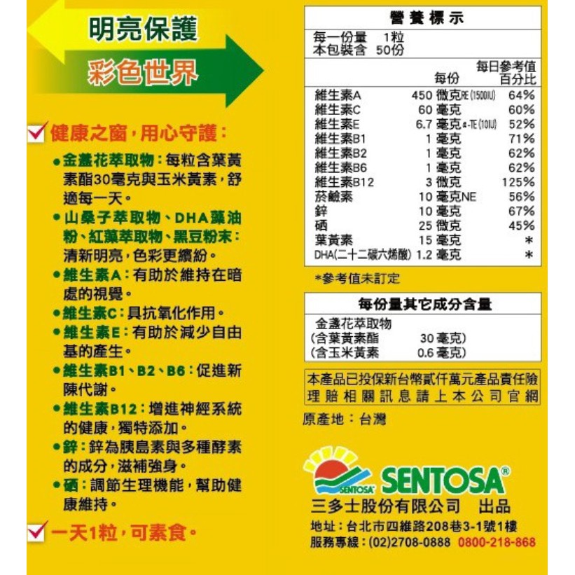 三多 素食金盞花葉黃素植物性膠囊 (50粒/盒) 大樹