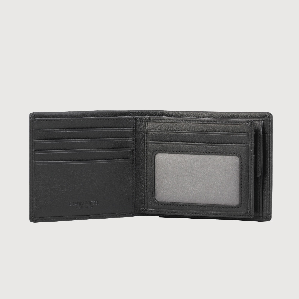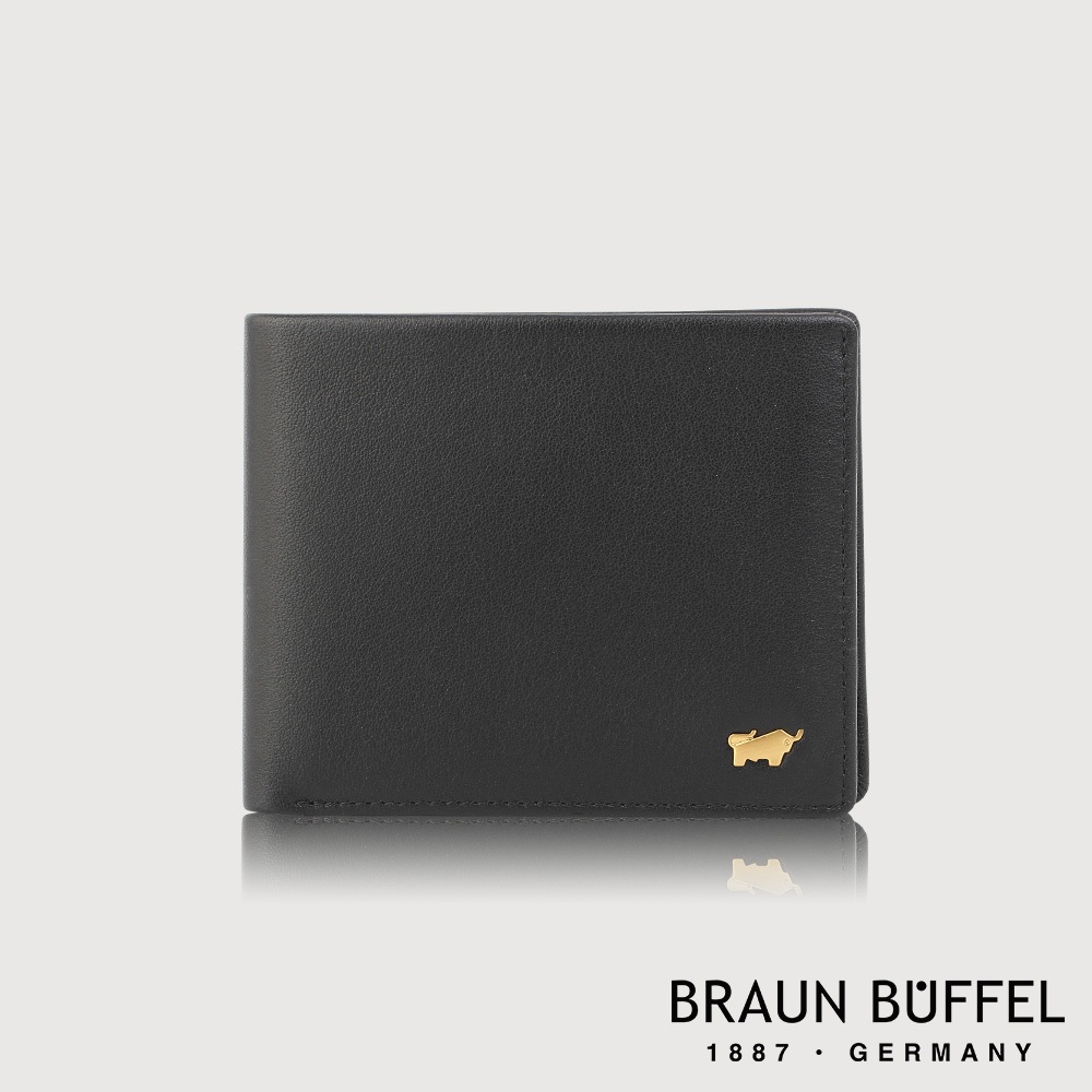 【BRAUN BUFFEL】新遊牧族-TW 8卡中間翻零錢袋短夾-黑色(德國小金牛台灣總代理)/BF380-318-BK