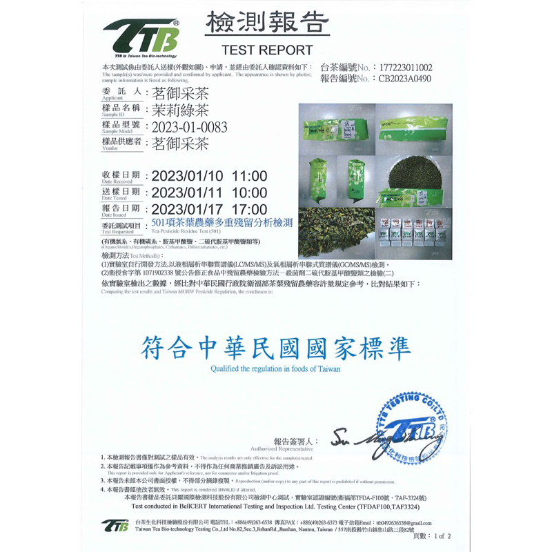 茗御采茶-茉莉綠茶茶葉三角立體茶包20入獨立夾鍊袋包裝(無線無標)