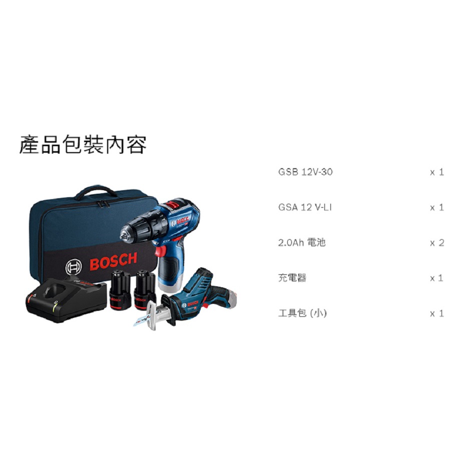 BOSCH 博世 12V 鋰電電鑽軍刀鋸雙機組(GSB 12V-30+GSA 12 V-LI)