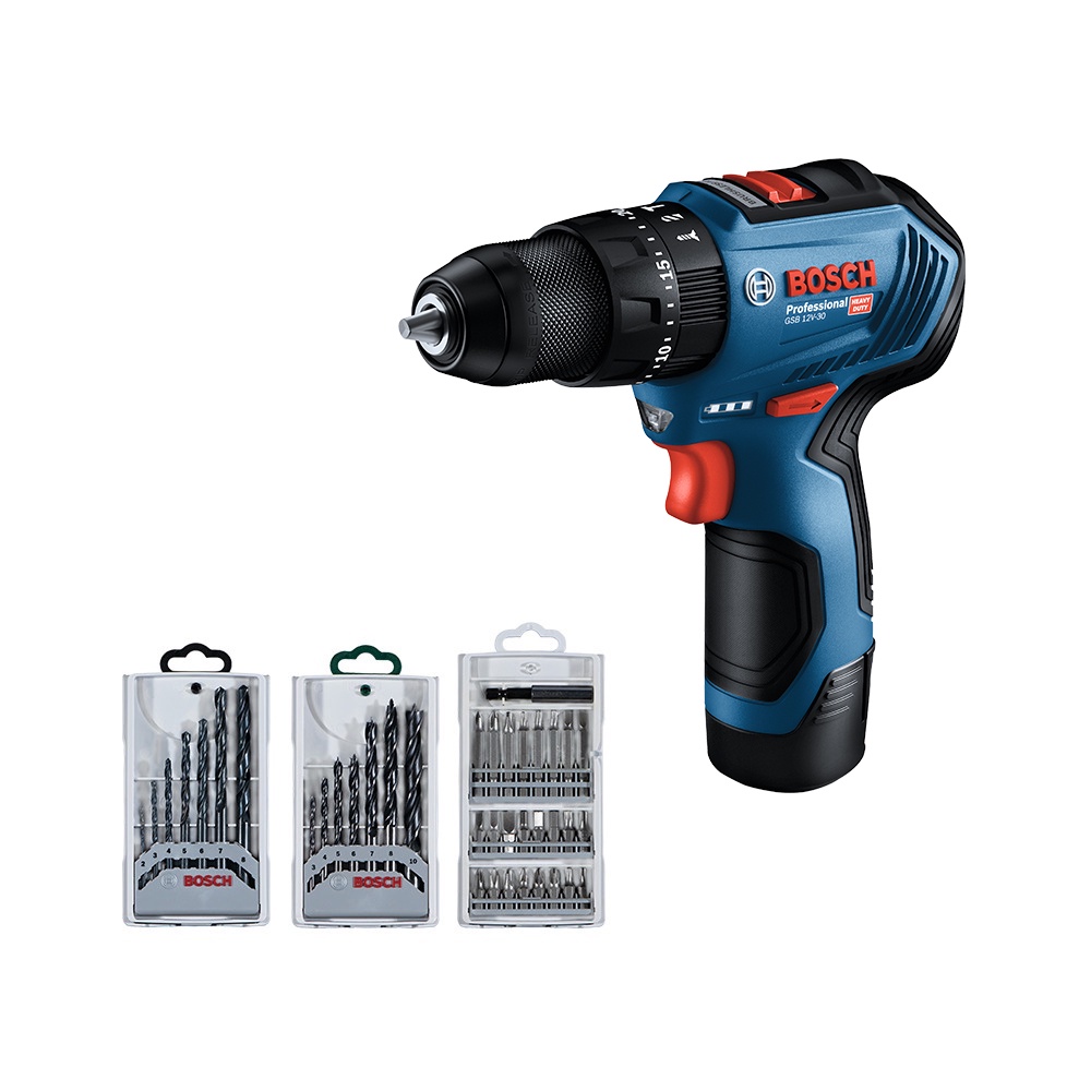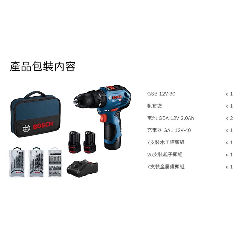 BOSCH 博世 12V 鋰電免碳刷震動電鑽專業套裝 GSB 12V-30 VP