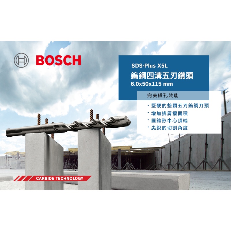 BOSCH 博世 SDS plus-X5L 四溝五刃鎚鑽鑽頭 6.0x50x115mm