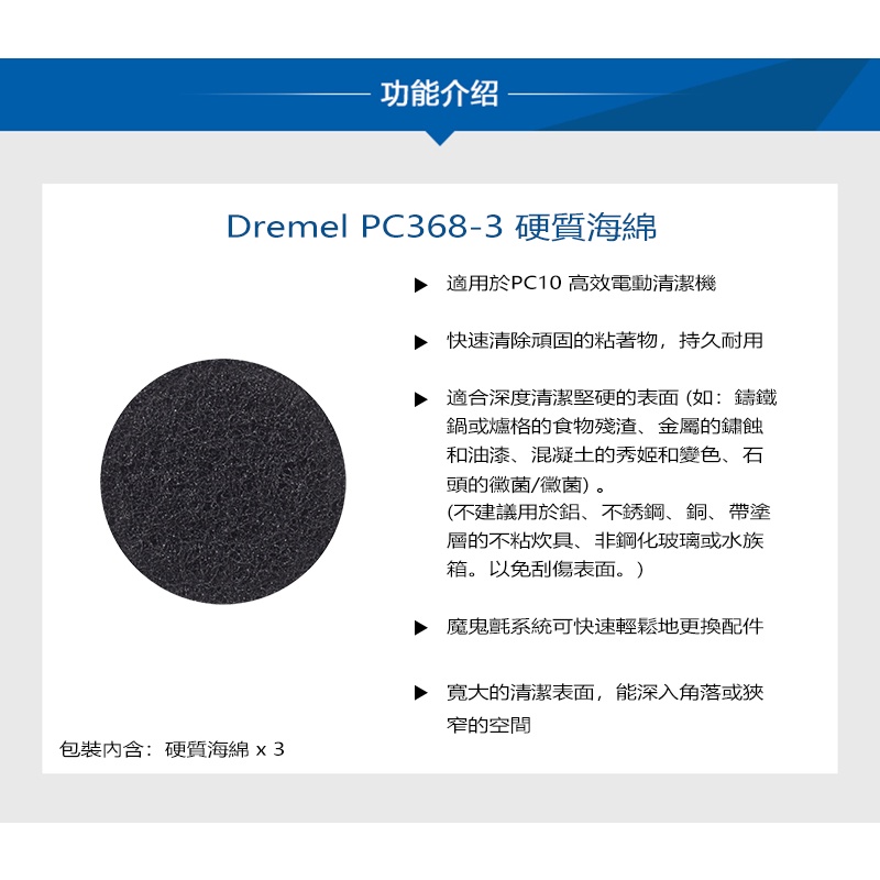 Dremel 精美 高效電動清潔機 Versa 清潔海綿(硬質表面)-3入組