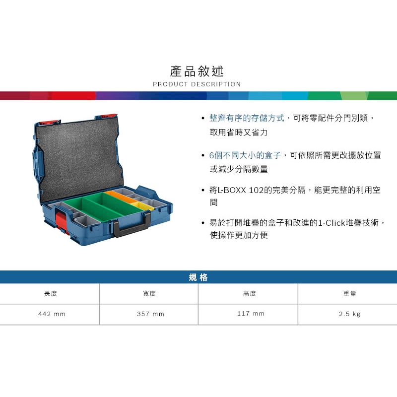 BOSCH 博世 新型系統式工具箱 L-BOXX 102(含6件置物格)