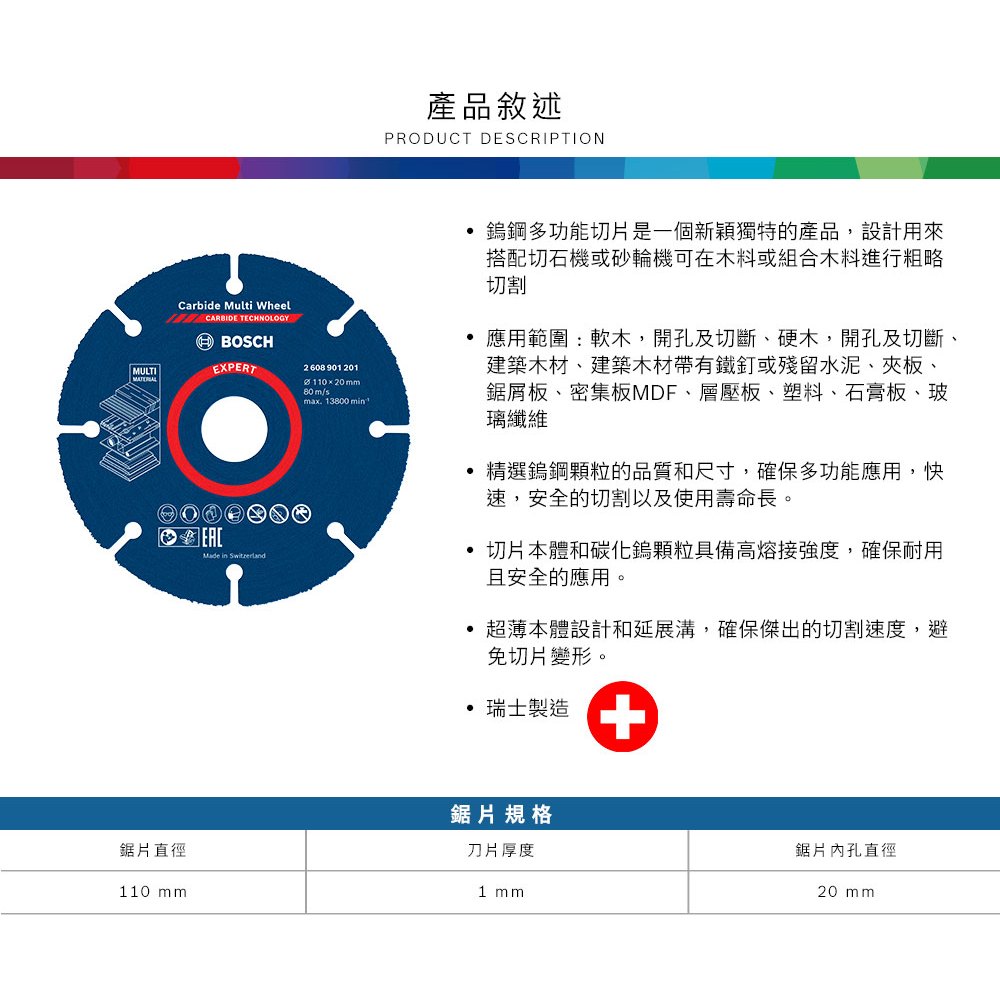 BOSCH 博世 超耐久鎢鋼多功能切片110x20/16mm (金工)