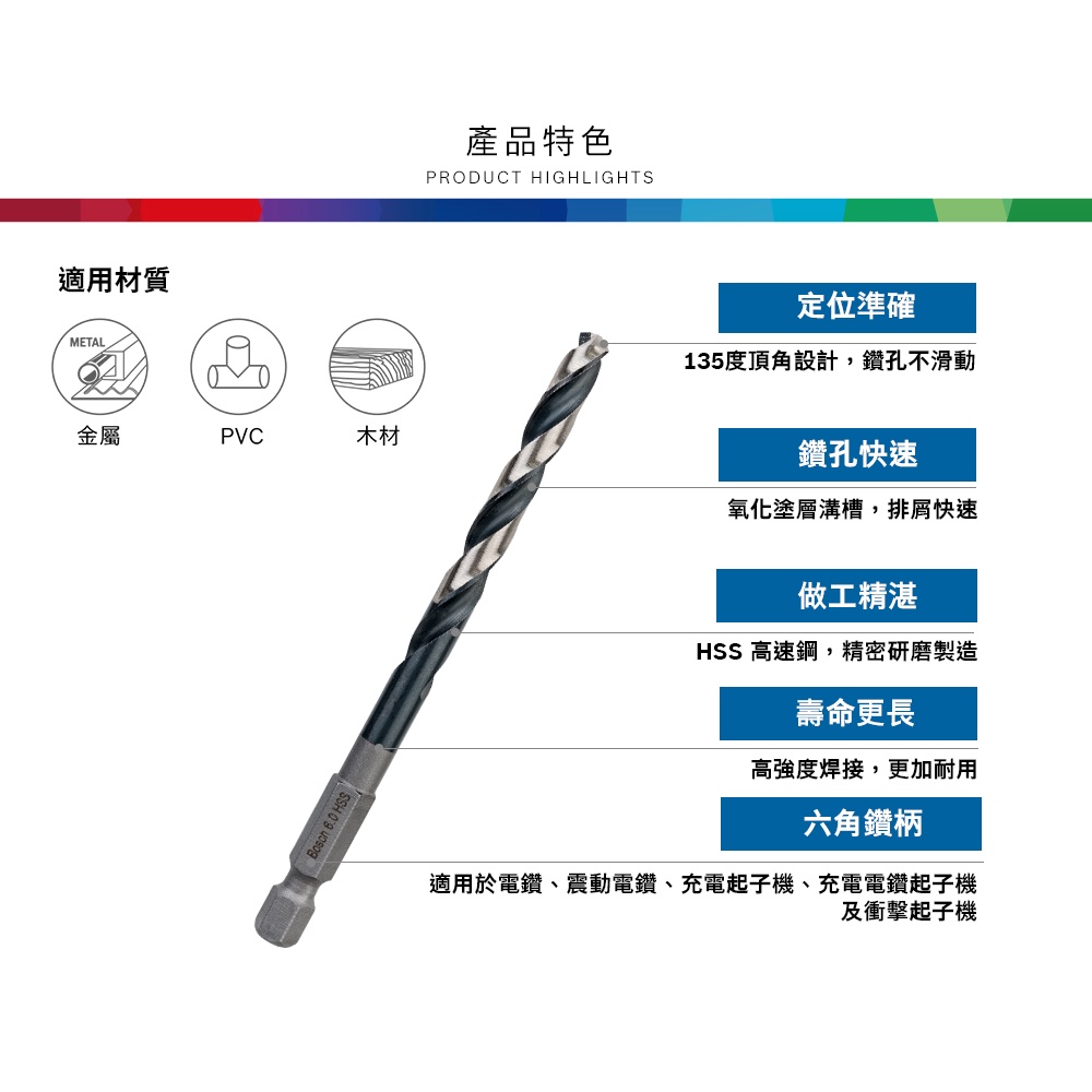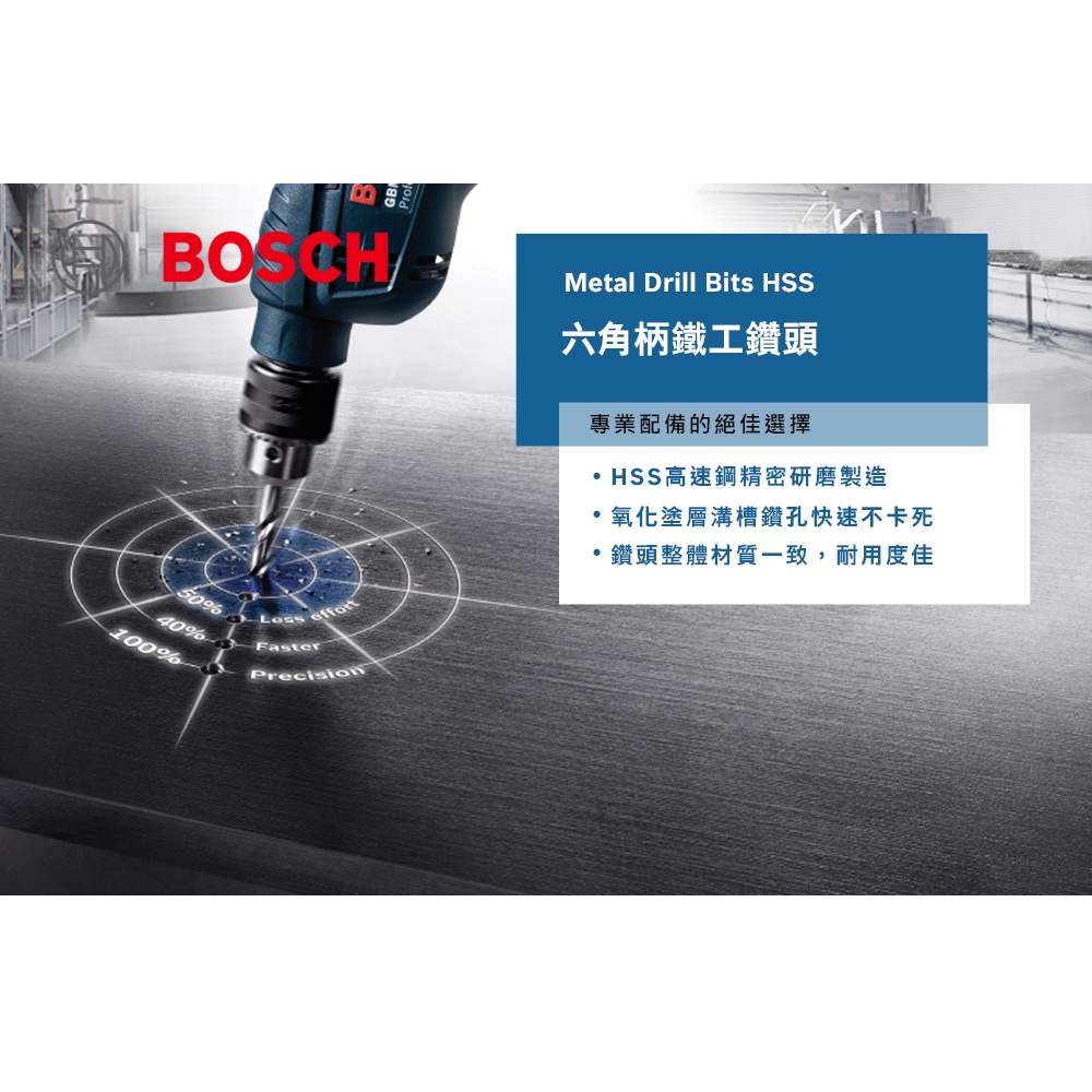 BOSCH 博世 HSS-G-鐵工鑽頭(四分之一吋-六角柄-2.5mm)