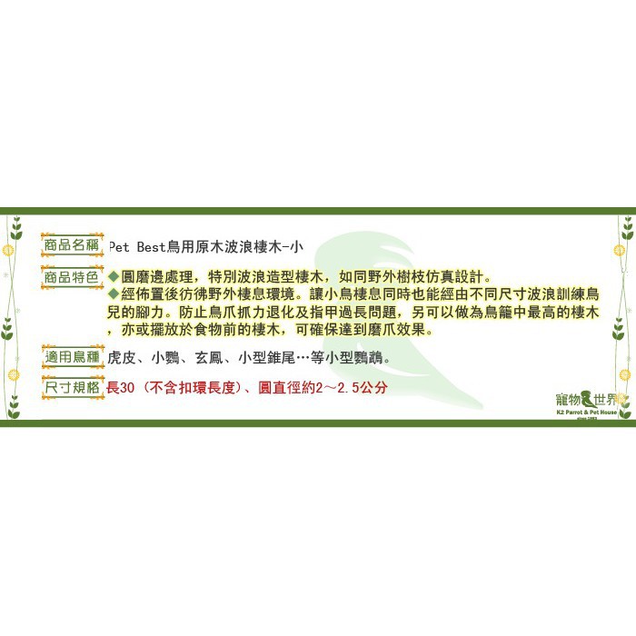 台灣製Pet Best 波浪原木棲木 鳥用原木按摩棲木(小)│鸚鵡 鳥棲木 站棍 站棒 原木棲木 GS053