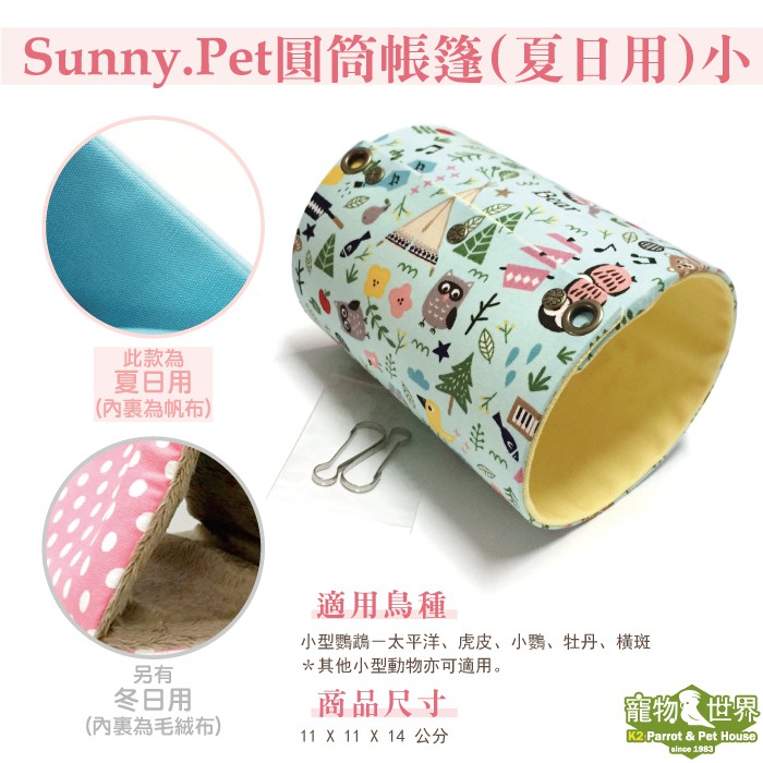 台灣製Sunny.Pet 圓筒帳篷(夏日用)-小 │質感手工帳篷 吊床 保暖休憩 睡窩 鳥屋《寵物鳥世界》SP011