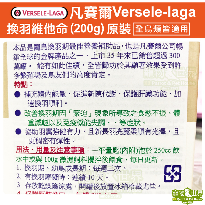 期限2027.04 比利時凡賽爾 歐樂斯 換羽維他命(200g/原裝)│鸚鵡鳥用營養品《寵物鳥世界》BS035