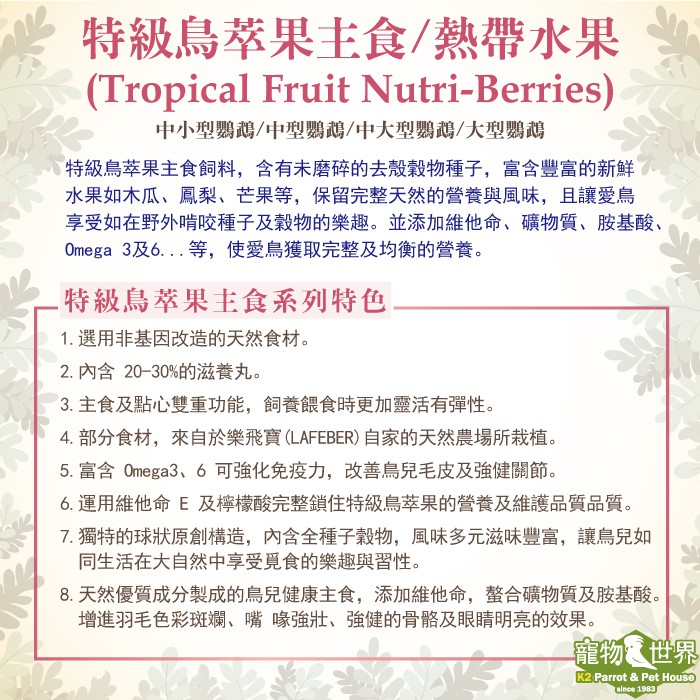 美國樂飛寶 特級鳥萃果-熱帶水果-中型 (10oz/284g)│鸚鵡零嘴 鳥飼料 鳥主食 鳥點心《寵物鳥世界》BS078
