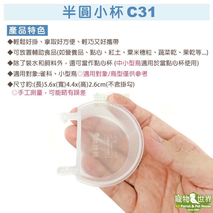 半圓小杯 霧面塑膠 C31 │水杯 飼料杯 鸚鵡 鳥用品 小型鳥 雀科 點心杯 吊杯 餵食器《寵物鳥世界》LH031