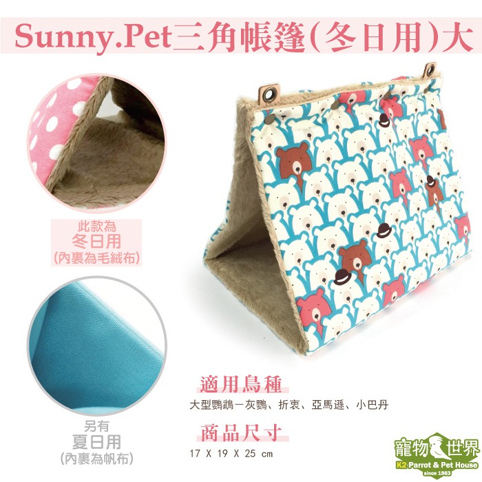 台灣製Sunny.Pet 三角帳篷(冬日用)-大│質感手工帳篷 鳥窩 吊床 刷毛保暖《寵物鳥世界》SP003
