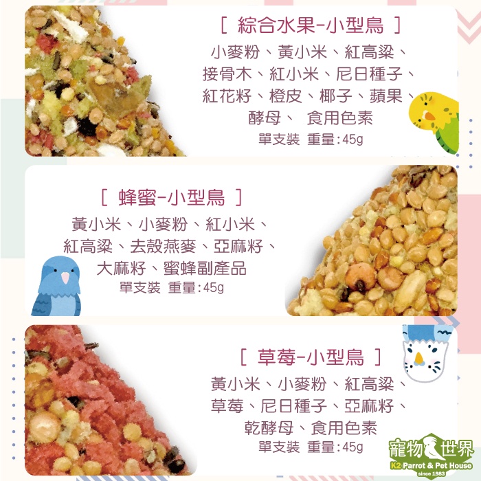 LoLo 鸚鵡棒棒糖 單支袋裝-45g | 小型鳥 中型鳥 雀科 文鳥麻雀 鸚鵡點心棒 零食棒《寵物鳥世界》RB