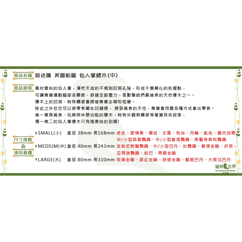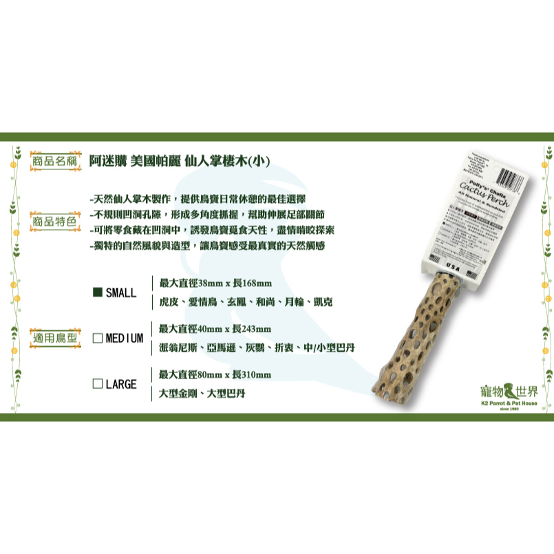 美國帕麗 仙人掌棲木│Amigo阿迷購 鸚鵡 鳥棲木 站棒 天然棲木《寵物鳥世界》AM0087 AM0088