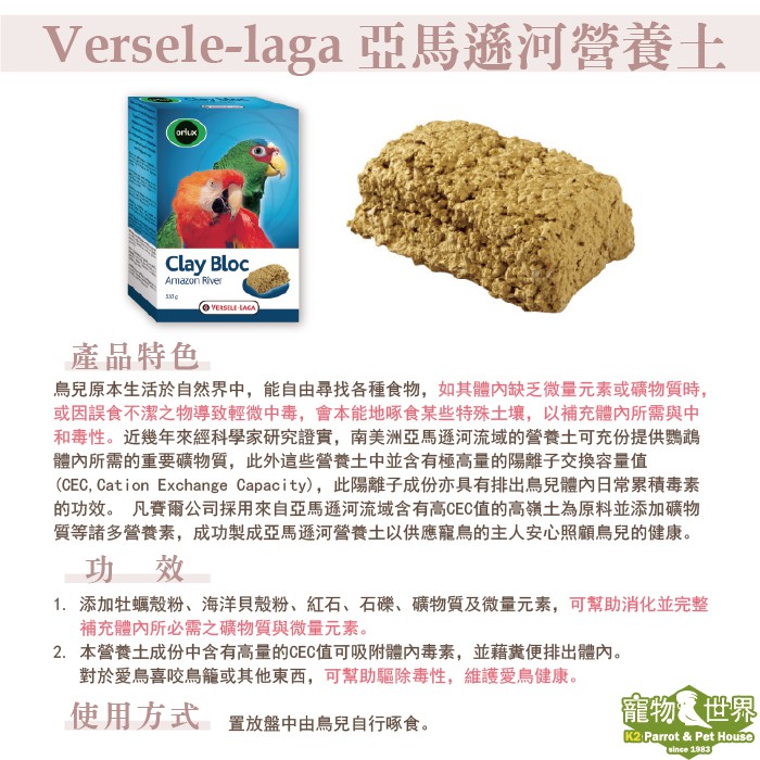 比利時凡賽爾Versele-Laga 亞馬遜營養土 550g │補充鈣質 礦物質 鸚鵡鳥用 BS032