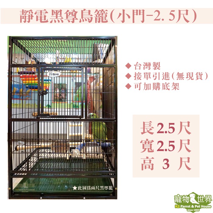 2.5尺靜電黑尊鳥籠 中大型鳥適用 (空籠+底盤 不附飼料盒) 台灣製 可刷卡可【接單引進】《寵物鳥世界》TW026