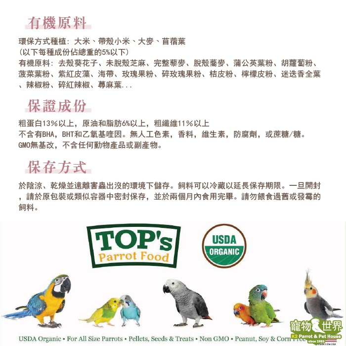 ParrotsIncAsia公司貨 美國TOP's鸚鵡滋養丸(大顆粒) 1磅/4磅│中大型鸚鵡 TP002 TP008