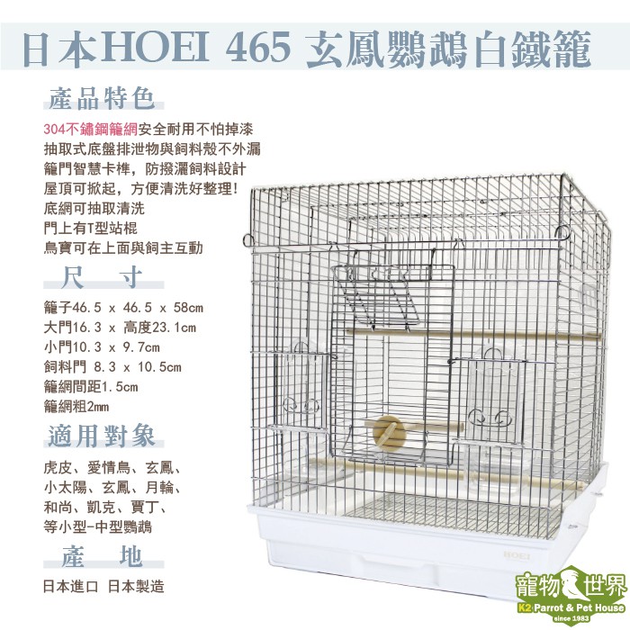 HOEI 465 不鏽鋼玄鳳鸚鵡橫網籠-白 日本進口銷售第一 白鐵 不銹鋼 防撥撒 防撥灑《寵物鳥世界》JP043