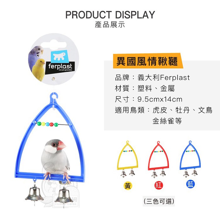 義大利Ferplast飛寶 異國風情鞦韆│隨機顏色 小型鳥/雀科 鸚鵡鞦韆 小鳥鞦韆 鳥玩具《寵物鳥世界》DA0588