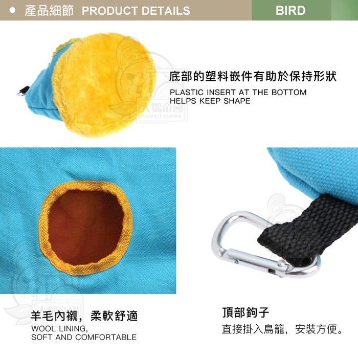 美國PH 日常保暖用品(M) 鳥巢 鳥窩 鳥屋 吊床 保暖 休憩 刷毛 冬天必備 顏色隨機《寵物鳥世界》DA0370