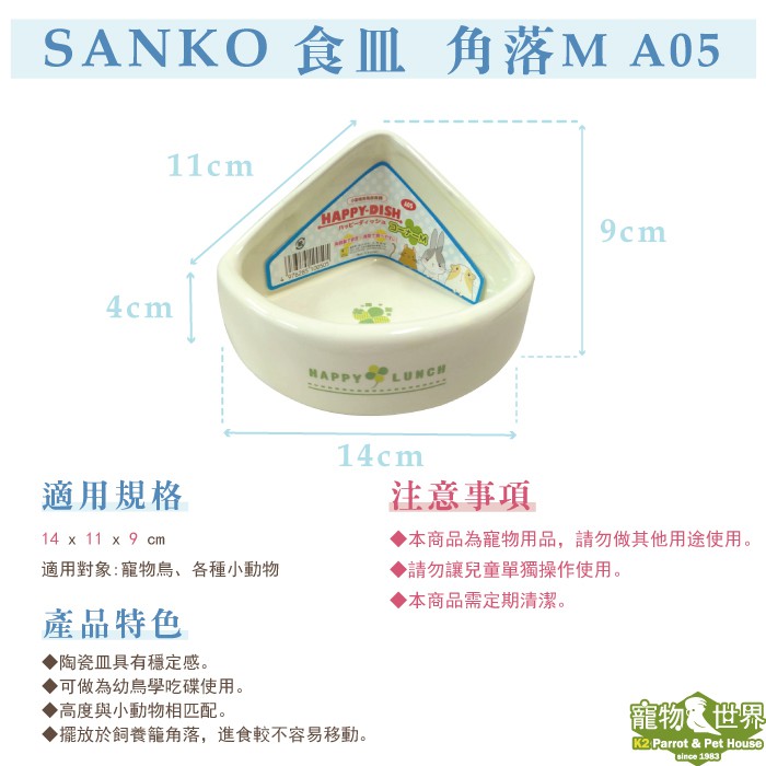 日本SANKO A05 食皿 角落M | 學吃碟 小動物餵食器 點心飼料碗《寵物鳥世界》JP072