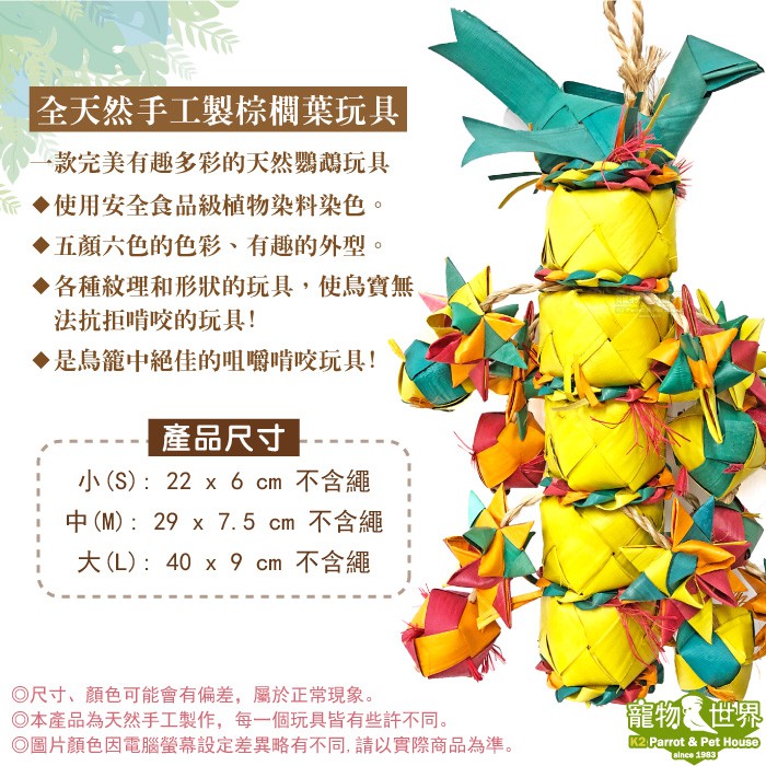 美國普拉尼 樂趣鳥塔 棕櫚葉 鳥玩具 鸚鵡啃咬玩具 棕櫚葉玩具《寵物鳥世界》DA0390 DA0391 DA0392