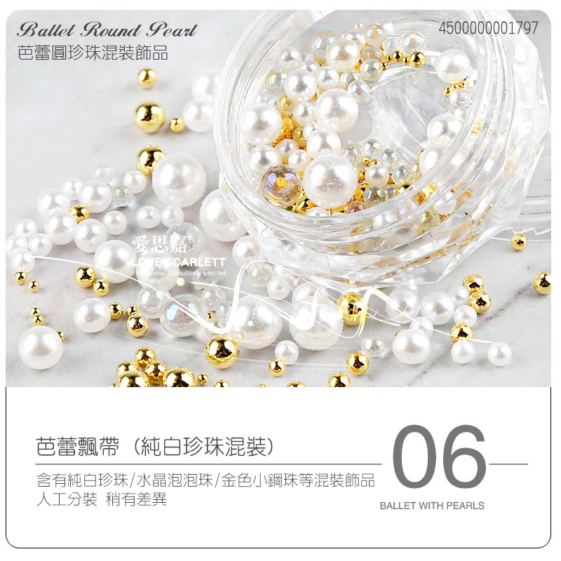 美甲芭蕾飄帶圓珍珠混裝飾品 綜合珍珠 美甲飾品 美甲必備品