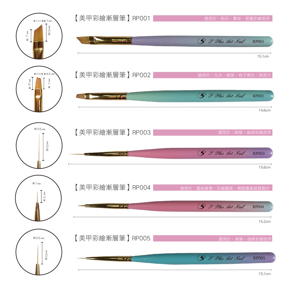 【Splus (S+)】 RP系列 彩繪筆 美甲彩繪 勾勒 平筆 圓筆 斜口筆 拉線筆 畫線筆 拉絲