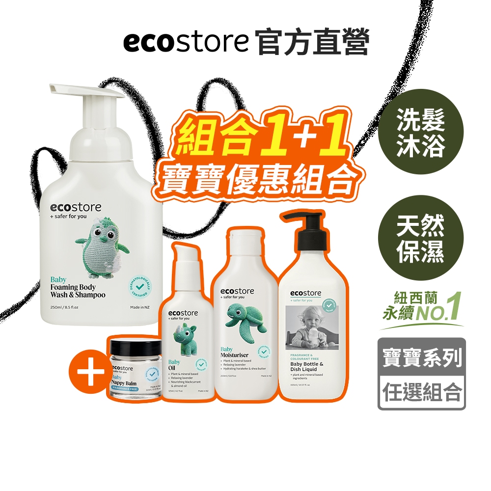 【ecostore宜可誠】純淨寶寶2合1洗髮&沐浴泡泡慕斯 寶寶屁屁膏 奶瓶清潔劑 寶寶潤膚乳 按摩油 護膚膏