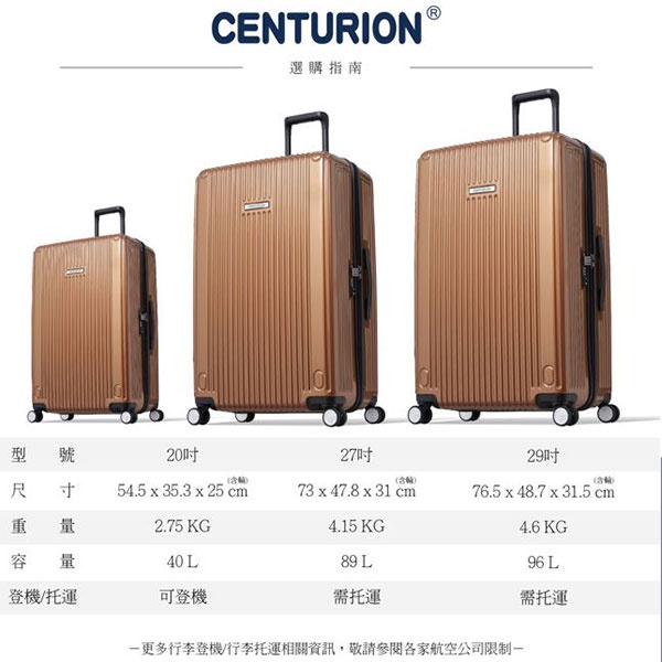 【CENTURION百夫長】舊金山金行李箱 拉鍊款 (27吋/29吋) 行李箱 旅行箱 出國 國旅