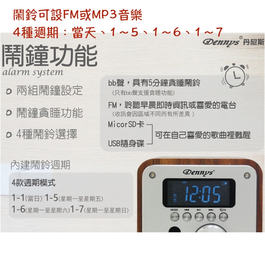 Dennys 藍牙USB/SD/FM鬧鐘音箱 WS-M30
