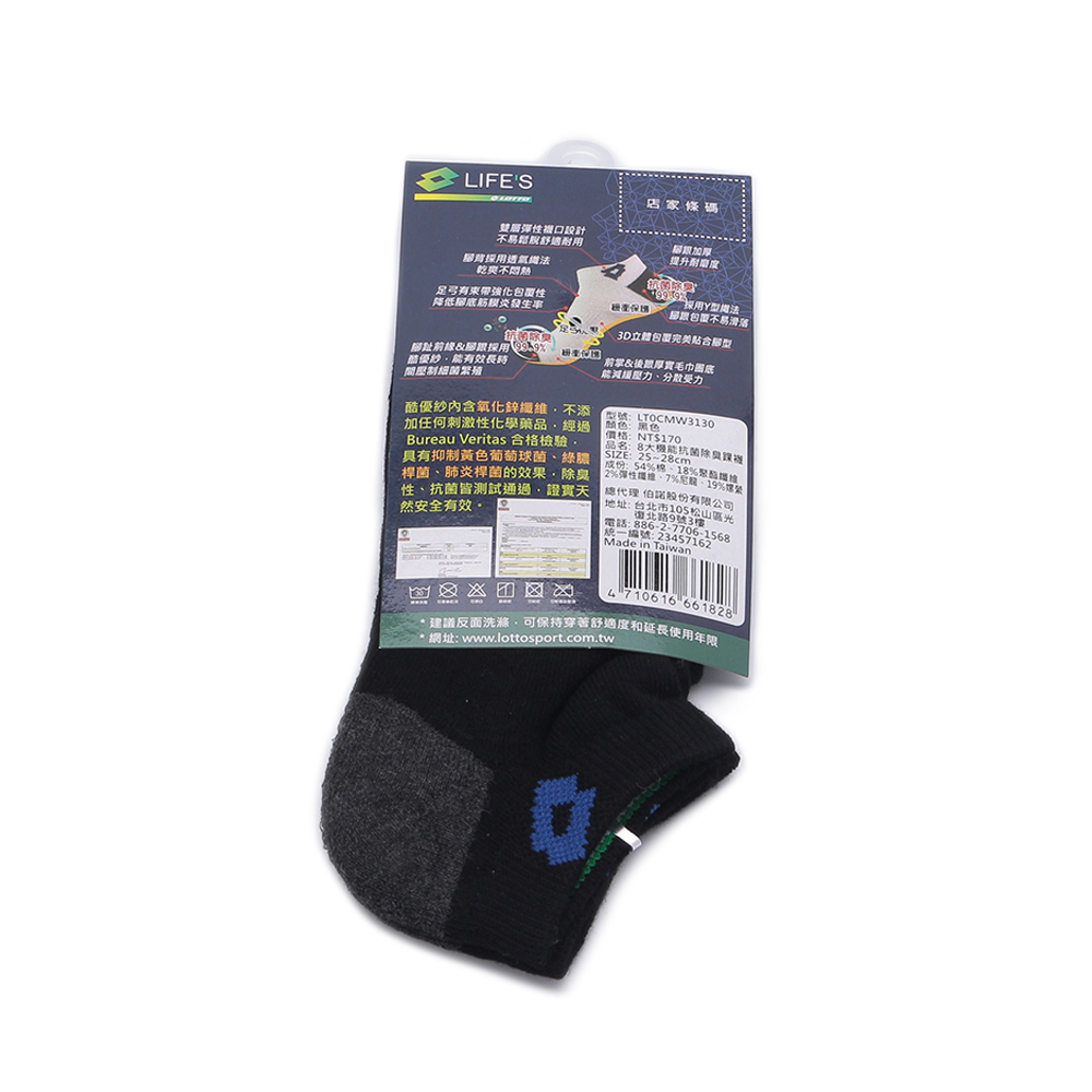LOTTO 8大機能抗菌防臭踝襪 黑 LT0CMW3130
