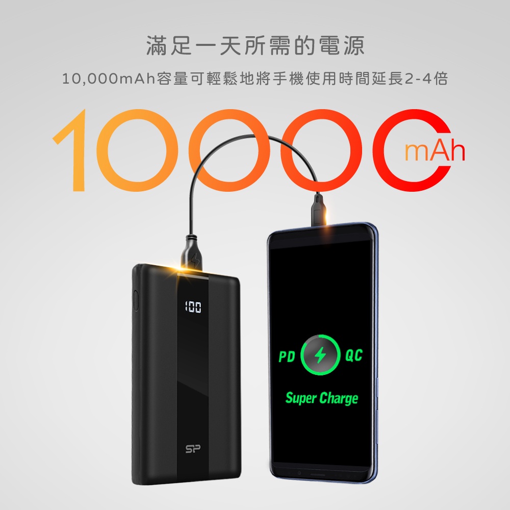 【可登機+電量顯示】SP QP55 10000mAh輕巧快充行動電源|PD/QC雙快充 支援iPhone/Android