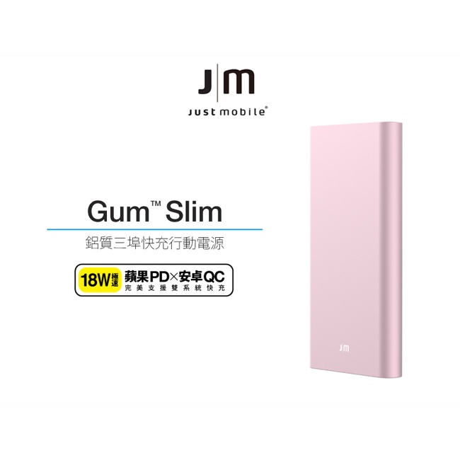 Just Mobile Gum Slim 10,000mAh 鋁質快充行動電源 玫瑰金色 (福利品)