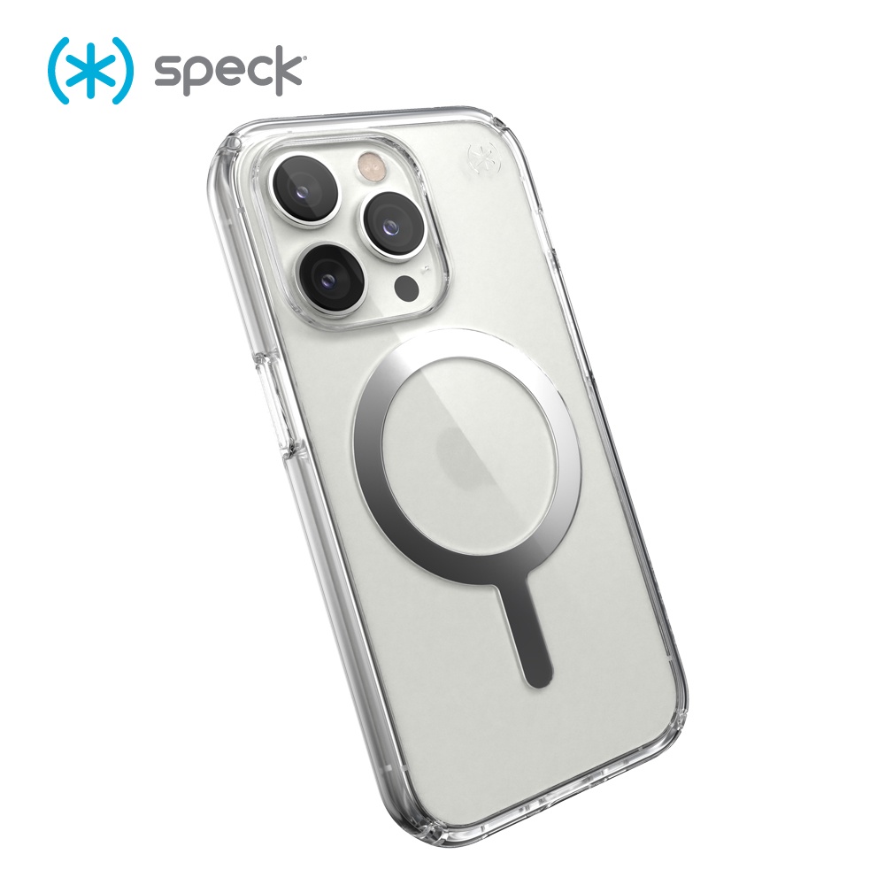 Speck iPhone 14 Pro Presidio Perfect-Clear MagSafe磁吸透明防摔殼-銀色